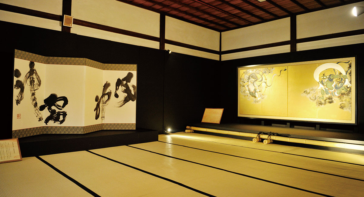 この「風神雷神」の真筆は京都の建仁寺に奉納され、国宝・俵屋宗達筆「風神雷神図屏風」と並んで常設展示されている。天才絵師俵屋宗達の風神雷神と翔子の風神雷神がはるかな時空を経て巡り逢った奇跡の作品である。宗達の風神雷神図屏風を知らずして揮毫したその作品は見事なまでに構図が酷似しており「奇跡の風神雷神」と称されている。