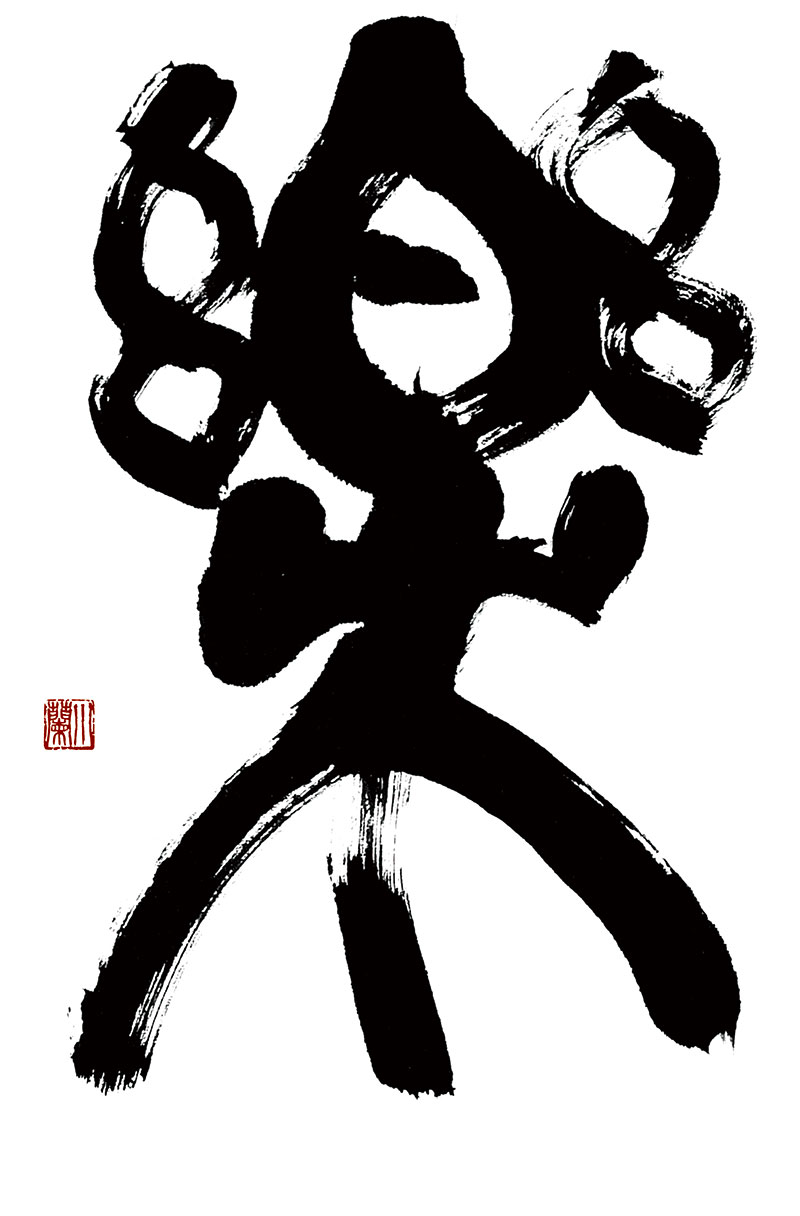 制作時に母、泰子が家にあったでんでん太鼓を使って漢字の持つ意味を伝えたことから、書にその印象が素直に反映され、金澤翔子の持つ感性の高さと、それを書に落とし込む天性の技術が色濃く反映された作品の一つ。